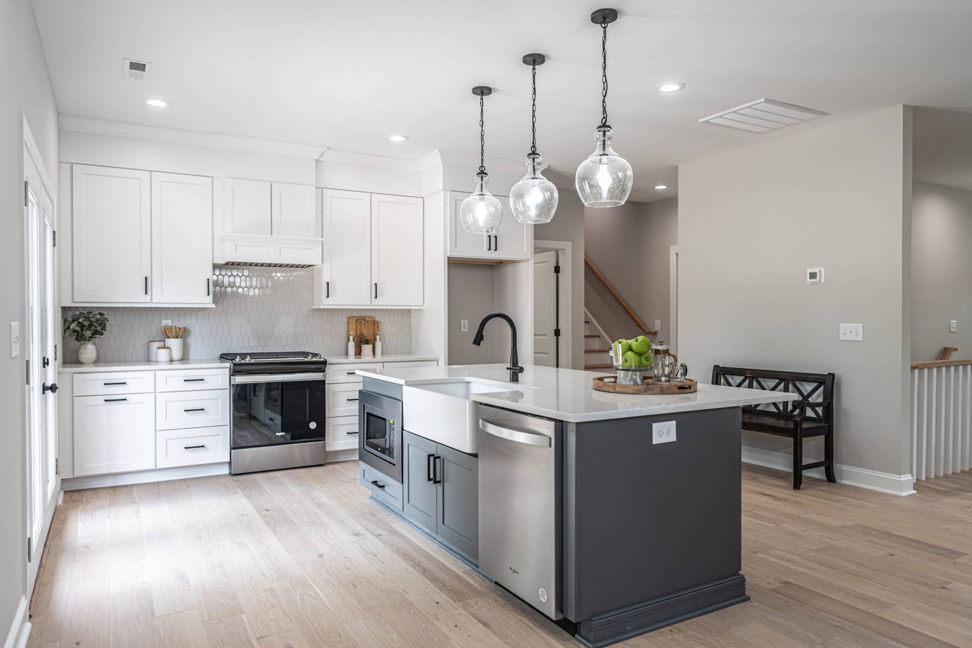 Ready to move in! NEW CONSTRUCTION in 7 Lakes West gated community! This multi-level, OPEN CONCEPT home boasts 3000sf on a half acre lot with 4 bedrooms and 3.5 baths. PRIMARY SUITE WITH CUSTOM CLOSET ON MAIN LEVEL, with the additional bedrooms on the upper and lower levels! HARDWOODS throughout with the exception of ceramic tile in baths and carpet in lower level bedrooms. The sunny eat-in kitchen boasts a GAS STOVE, white farmhouse sink, quartz countertops, microwave in island, and BUILDER GIFT of French Door refrigerator. The charcoal gray Shaker style cabinets on the island contrast beautifully with the surrounding white Shaker style cabinets. For additional storage, the adjacent laundry/mudroom has floor to ceiling cabinets. TWO LIVING AREAS! High quality fiber cement siding & efficient propane fueled tankless hot water heater. Lake Auman, the centerpiece of 7 Lakes West, is the cleanest lake in NC! West Pine Elementary school district! $3500 Preferred Lender Credit